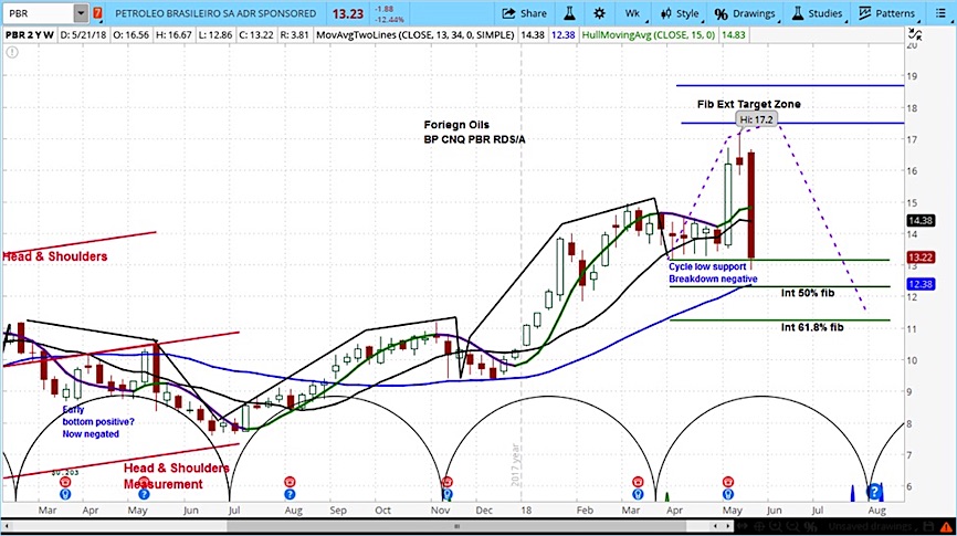 Looking at the PBR chart below, our analysis is that the price has broken but is still hovering around the low set at the beginning of its current market cycle. Once this happens, there is a risk that the stock will continue to fall for the remainder of the cycle.
