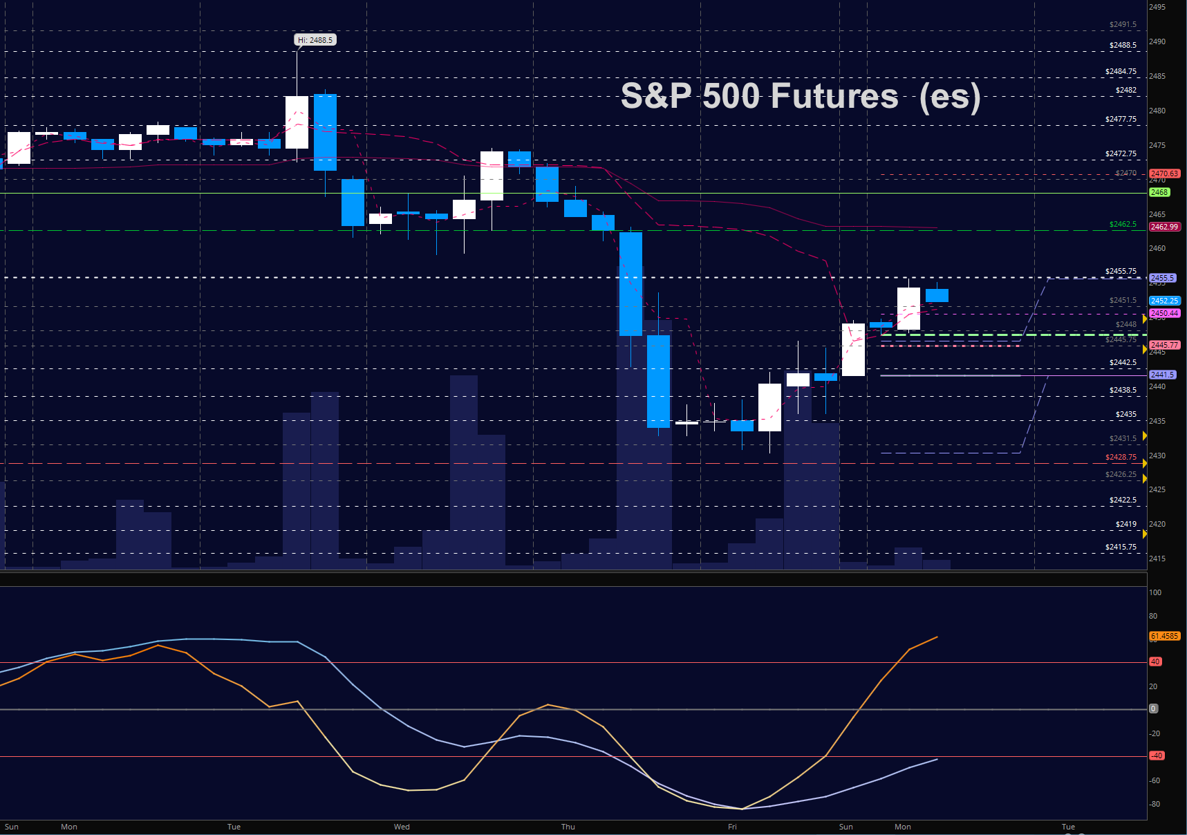 - Resistance sits near 2456 to 2462.5, with 2468Â and 2474 above that