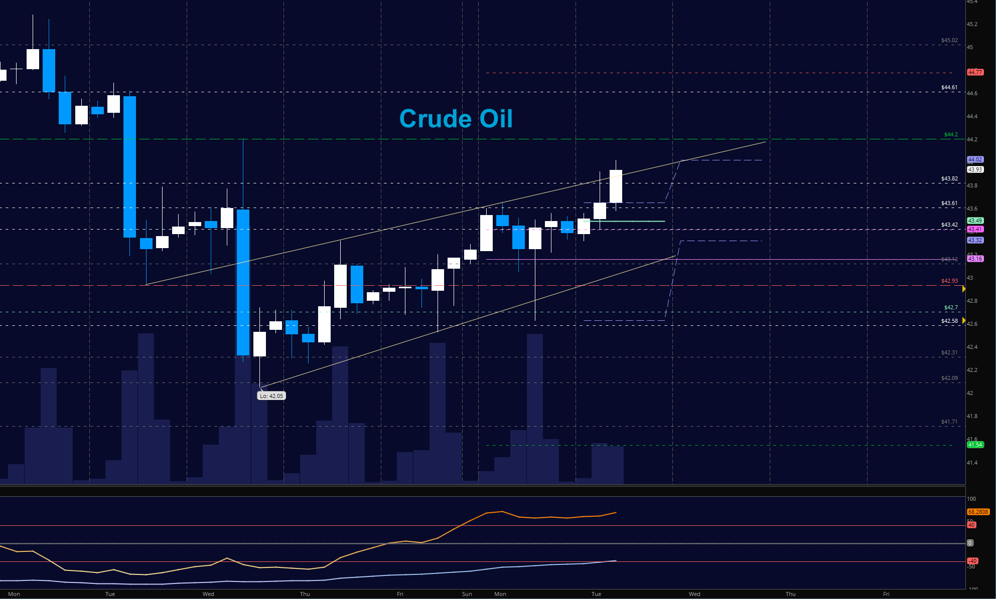 - Buying pressure intraday will likely strengthen with a positive retest of 44.07
