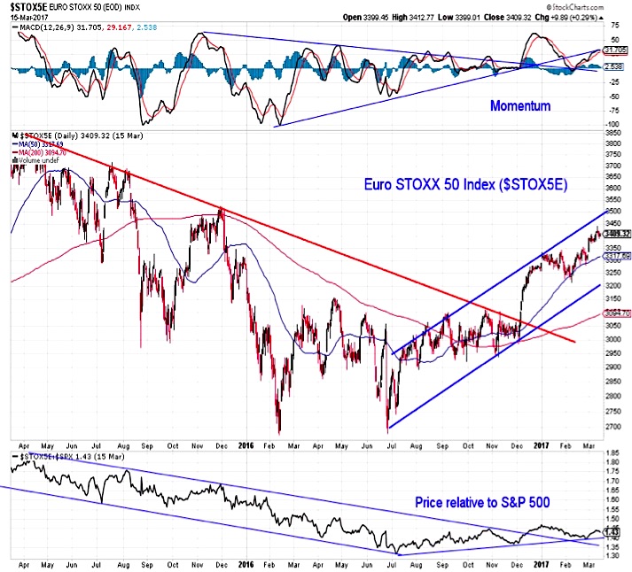 While conditions have deteriorated somewhat at home, international stocks are showing absolute and relative price strength. Currency volatility can add to the noise, but European stocks have followed last year’s breaking of the absolute price down-trend with a breakout (and re-test) of the trend versus the S&P 500. While it is not yet clear that international stocks are poised for an extended period of outperformance, the extended period of underperformance (relative to the U.S.) may be winding down.