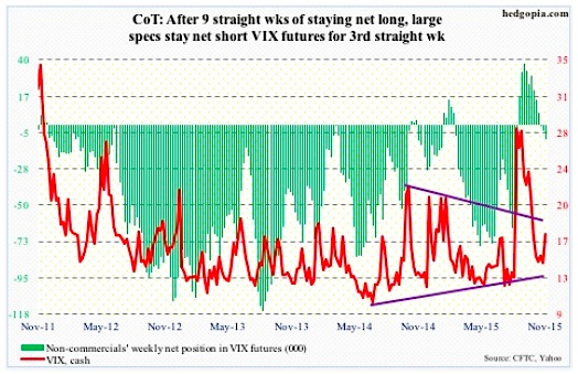 That said, daily conditions are now overbought on the VIX, although a weekly chart has plenty of oversold conditions left to be unwound.