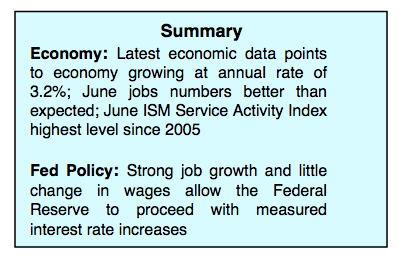 The latest jobs numbers and the best ISM data for the service sector since 2005 argues that GDP growth is solidly on track for annualized gains of 3.00% or more. The bottom line is that the strongest support for the stock market remains the strength of the U.S. economy. This argues that any potential drawdowns this summer associated with the mid-term elections will be minimal and reversed later in the year.