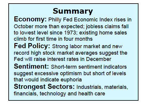 Investors appear to be motivated by the prospects for tax cuts for individuals and corporations. It is estimated that if corporate taxes are reduced to 20% it could translate into an increase in S&P 500 earnings of more than 10% and have more than twice the effect on small business. The markets are also focused on the potential for more than $2 trillion parked overseas to return home as the tax rate falls from 35% to 10%. Entering the new week the S&P 500 Index is poised to set a new record by going more than 241 days without experiencing a 3.00% decline.