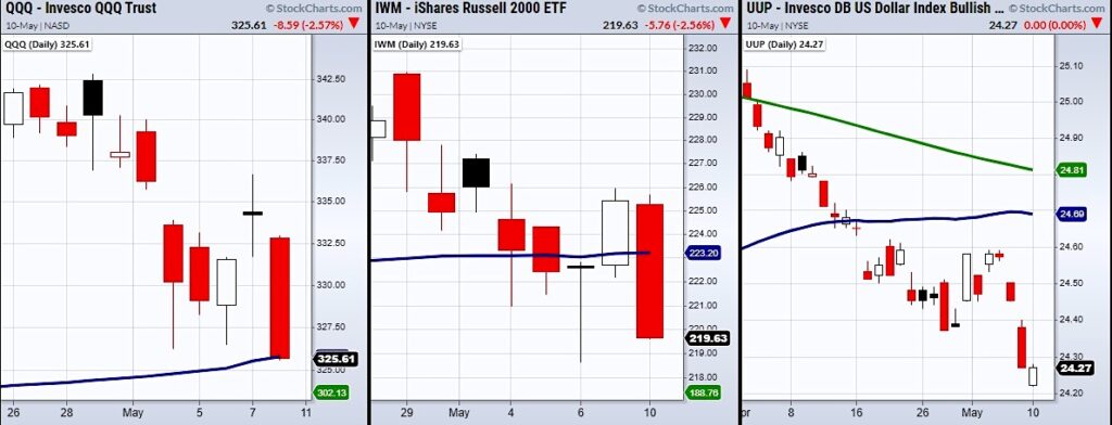 The Russell 2000 (IWM) and the Nasdaq 100 (QQQ) both broke their 50-Day moving averages.